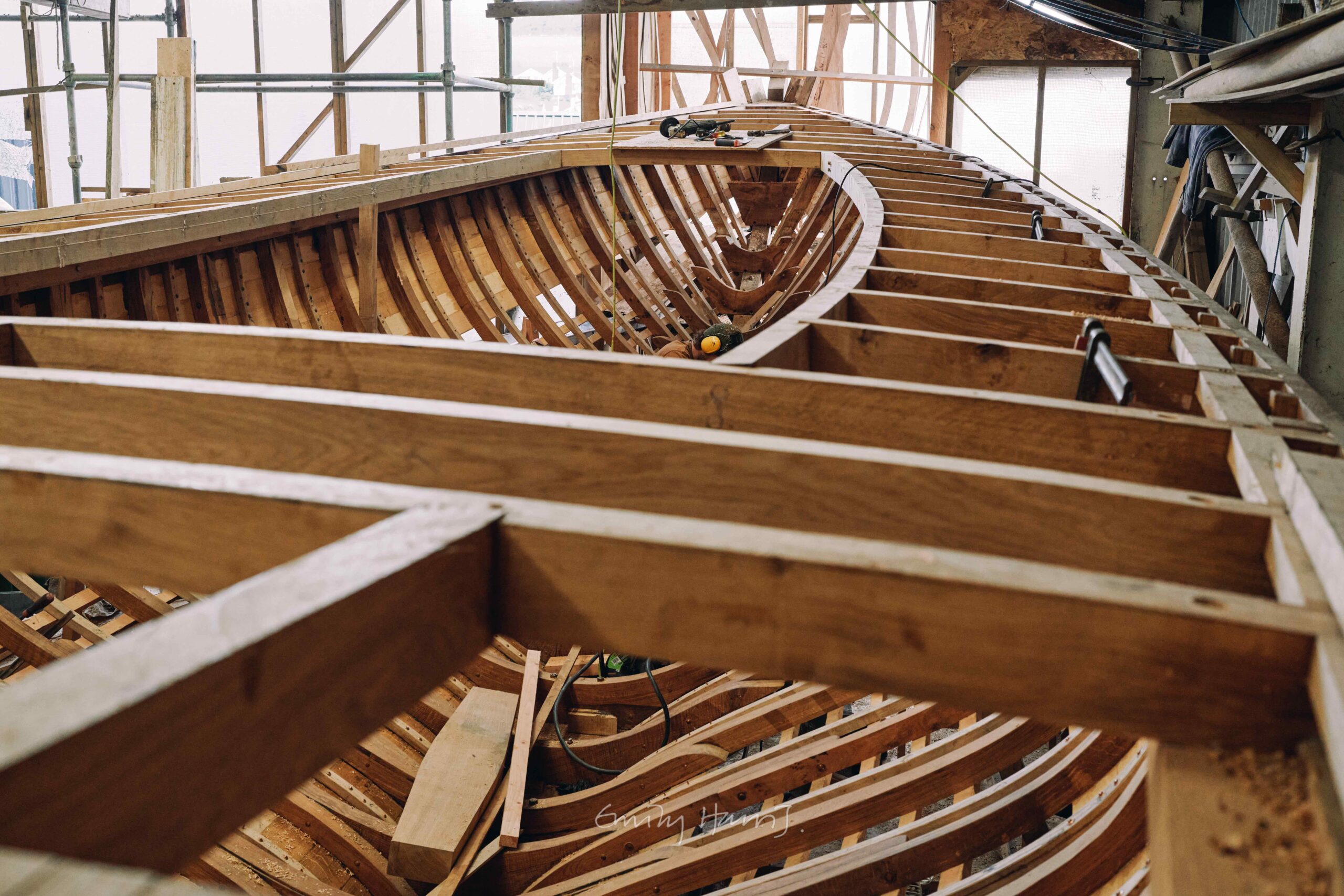 This project is already well underway. With her hull and backbone rising proudly from the workshop floor, the schooner represents a once-in-a-lifetime opportunity for a discerning buyer to acquire a vessel with pedigree and well proven performance, and to influence her completion to personal taste.